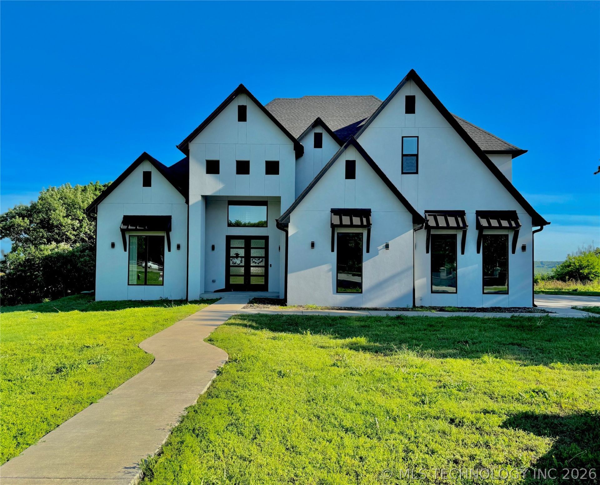 Welcome to Breathtaking Views in the Ridgeview Estates conveniently across from Stone Canyon Neighborhood Sitting on 1 Acre lot this 2021 Build Features 4000sqf of awesomeness with an Office, 2 Bedrooms including Master Bedroom and 2 and half baths down. 2 other bedrooms 1 full bath, Game Room and Theater room upstairs. one bedroom with balcony with awesome views of port of Catoosa! kitchen and bathrooms all have quartz countertops, living room has a very very high ceilings very modern with lots of natural light, outside paradise has an contemporary rectangle pool, gazebo for the cookouts with all crew, this is definitely a must see in person.